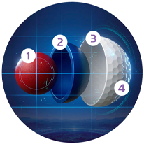 - ① 球核 : 使用高反弹材料制作的柔软的强大球核