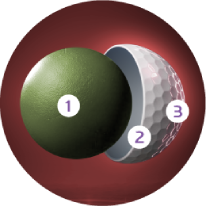 1. An incorporation of a urethane cover ensures a soft impact feel for all shots and also reinforces spin control on and off the green.
