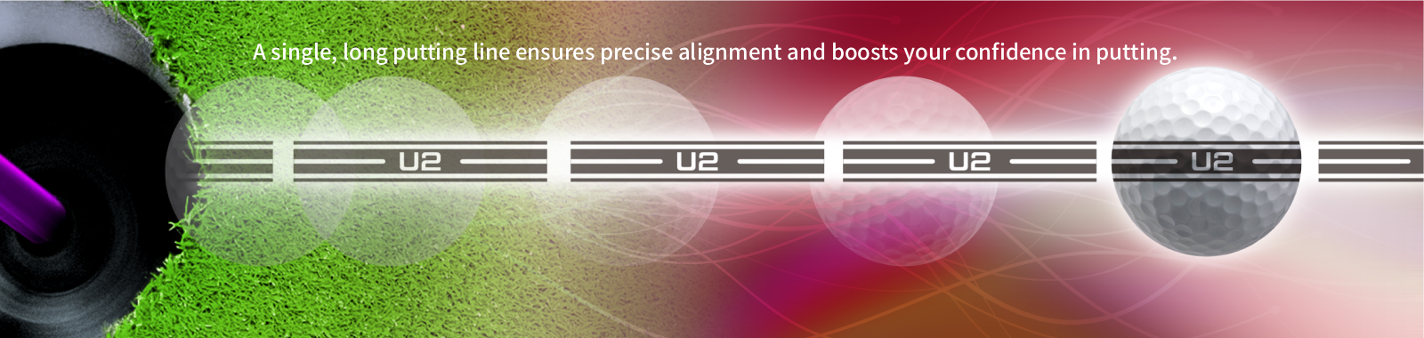 A golf ball combining style and functionality with a black long putting line