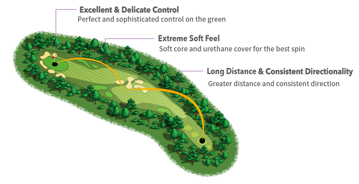 - ③ Out Cover :It applied thin and smooth urethane out cover and 332 Dimple with reduced flight safety and air resistance